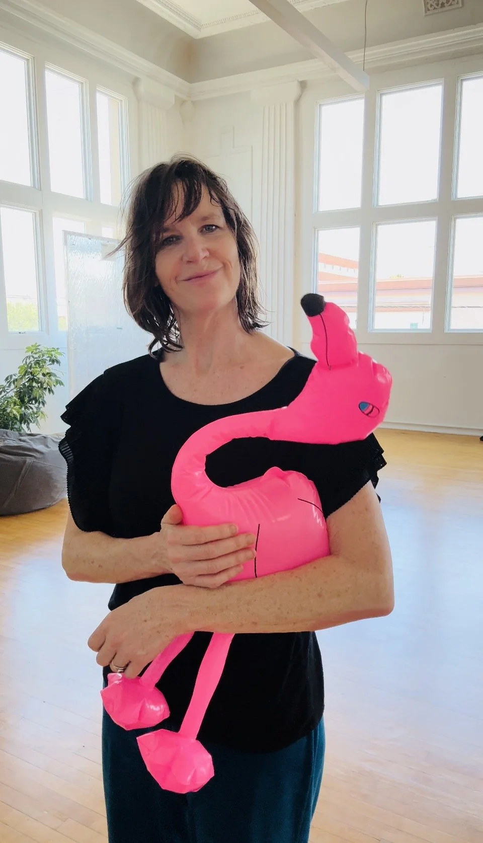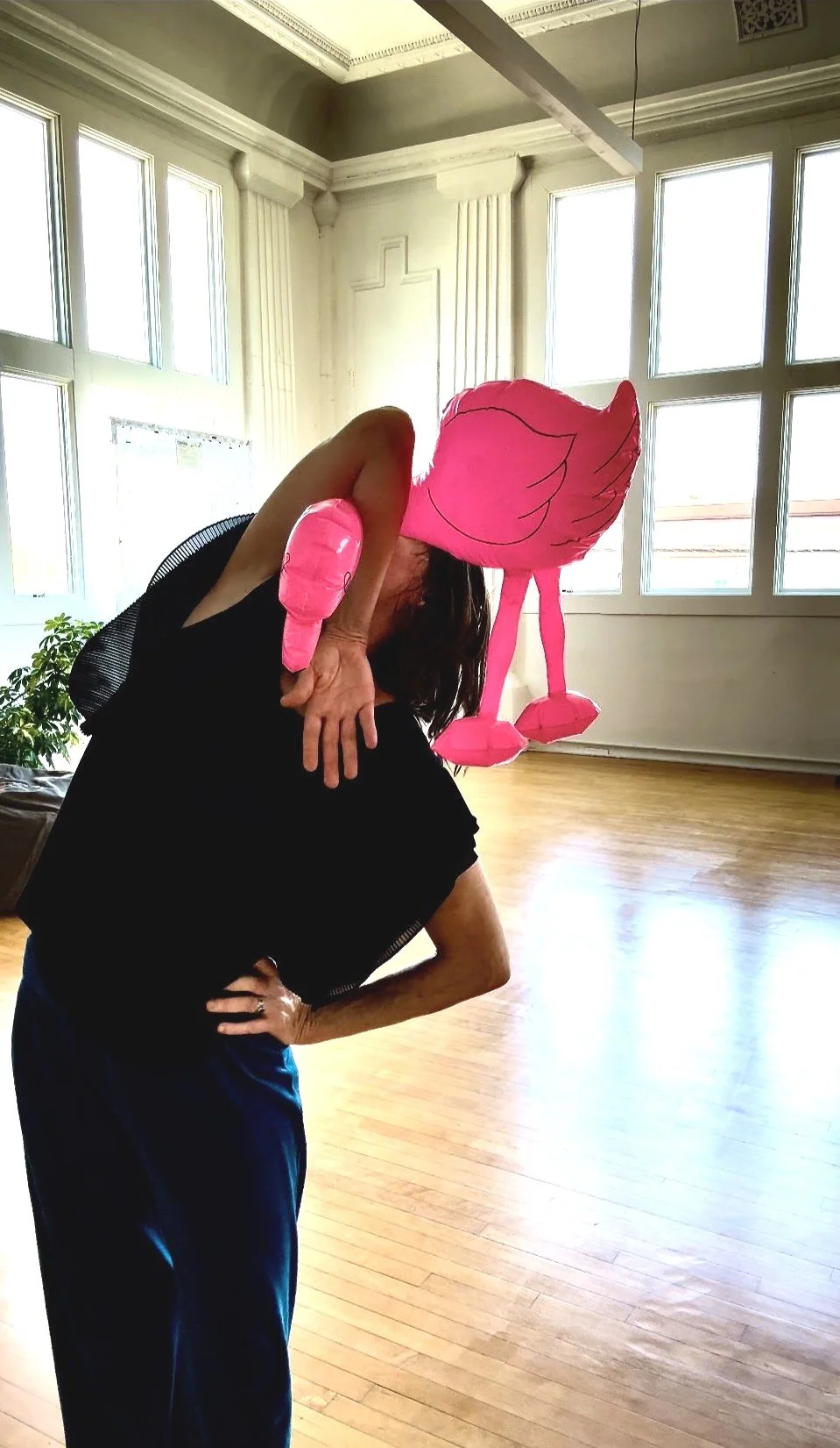 I mean, bright pink! Explosive dance contrasts dreamy embodiment and